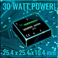 30 Watt Power und 4:1 Eingangsspannung im 1“x1“ DIP-Gehäuse.